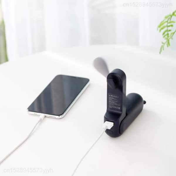 Quạt cũng có chức năng pin dự phòng , có thể sạc cho điện thoại di động và các thiết bị khác trong trường hợp khẩn cấp.
