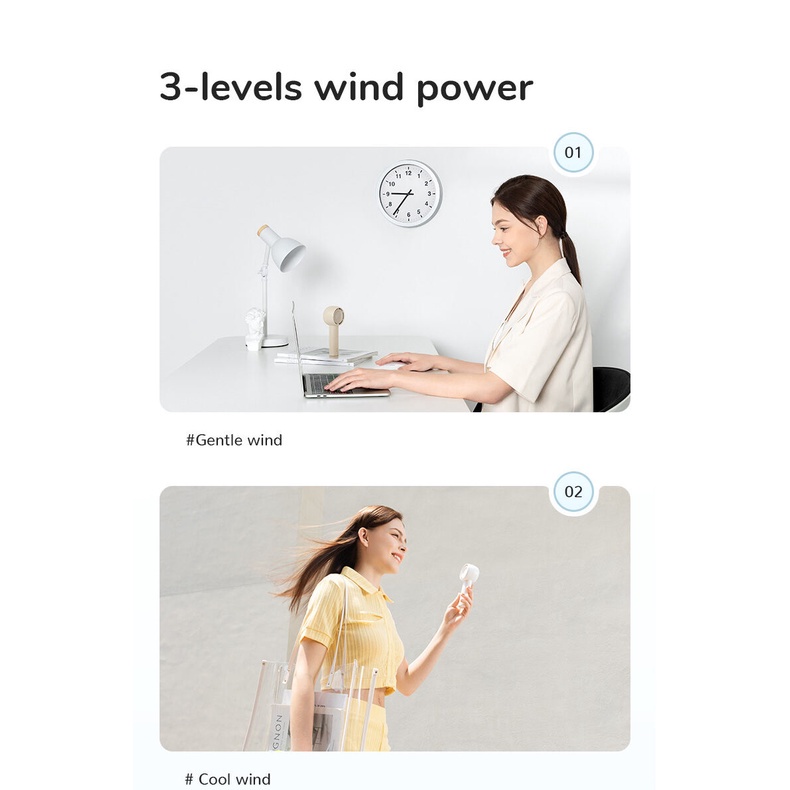 Quạt cầm tay 3 Tốc Độ Gió: Sản phẩm được trang bị 3 tốc độ gió khác nhau, cho phép bạn linh hoạt điều chỉnh theo nhu cầu làm mát. Việc điều khiển chỉ cần một nút nhấn. Động cơ không chổi than hiệu suất cao giúp tạo ra luồng gió mạnh mẽ và đảm bảo độ bền lâu dài.