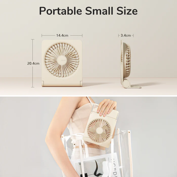 Với kích thước chỉ 144L x 34W x 204H mm, quạt JISULIFE Life3 có thể đặt gọn trên bàn làm việc hoặc cất vào túi xách để mang đi mọi nơi. Ngoài ra, quạt còn có móc treo tiện lợi, giúp bạn có thể treo lên tường hoặc lều trại khi đi du lịch, cắm trại.
