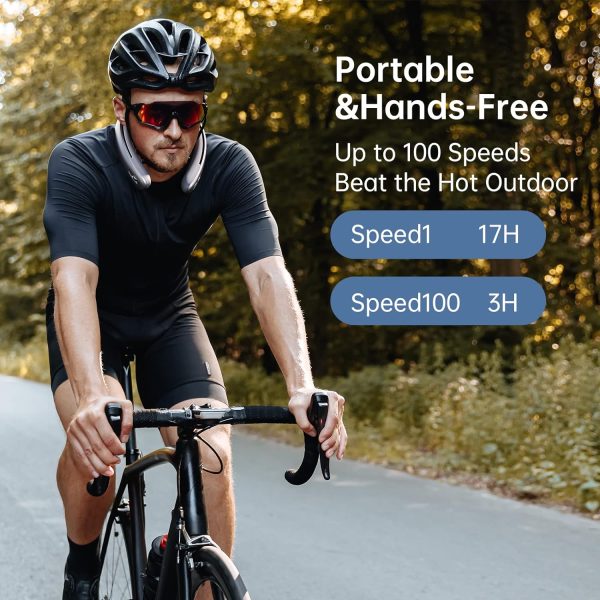 - Đeo quạt theo cách mà bạn cảm thấy thoải mái nhất. Thiết kế nẹp cổ thoáng khí giúp bạn có thể điều chỉnh độ rộng cổ để vừa vặn và thoải mái.